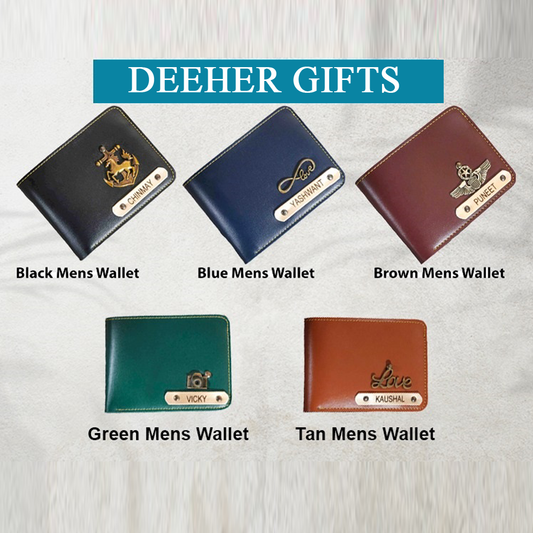 Faux Leather Men’s Wallet + Metal Keychain + Gold Zari Pen Set