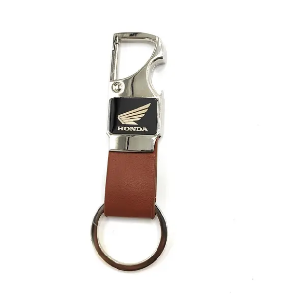 Keychain Metal ( Brown Leather Metal Hoop Keychain with Opener ) – For Single Side Engraving